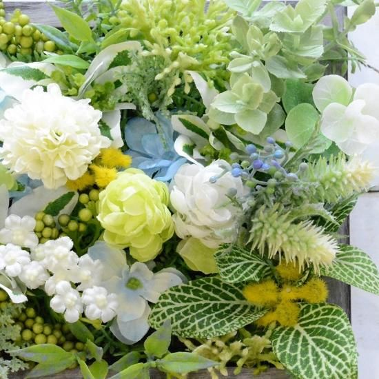 ??アーティフィシャルフラワー・グリーンとは  高品質造花で耐久性があり、お手入れいらずで綺麗な状態が  長く楽しめます。ハンドメイドのため、在庫状況状況により、花材が写真と少々変更になる場合があります