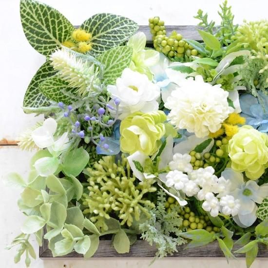 Lulu's ルルズ ホワイト×グリーンのフレームアレンジ アーティフィシャルフラワー サイズ:幅19cm×高さ14cm×奥行き5cm ホワイト×グリーンのフレームアレンジ Lulu's-1480
