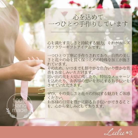 水やり不要で長期間美しさを楽しめるハーバリウム。テーブルや玄関、デスク周りに置くだけで空間を華やかに彩ります。