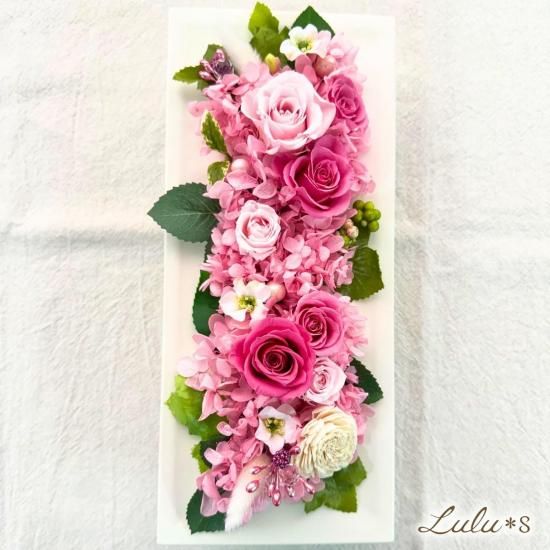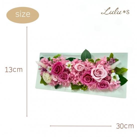 ・花材:プリザーブドフラワー(バラ・アジサイ・小花)