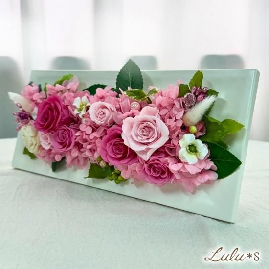 お部屋を華やかに演出するプリザーブドフラワーフレームアレンジです。
