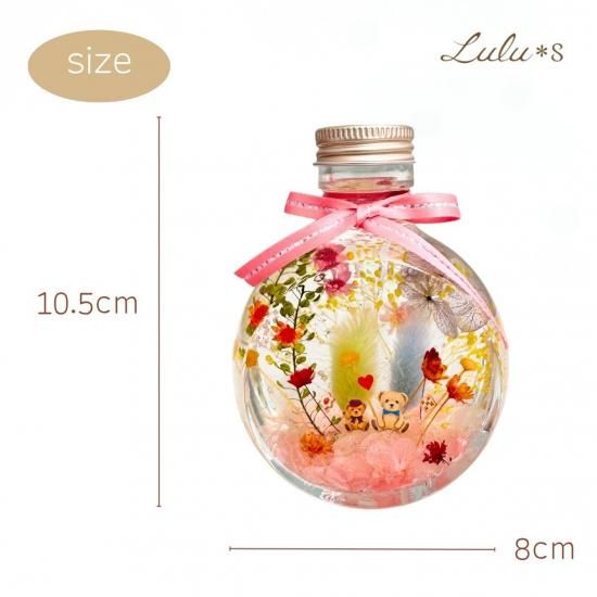 くまのハーバリウム 丸ボトル ピンク 癒しの花 ギフト プレゼント ドライフラワー プリザーブドフラワー フラワーインテリア かわいい置物 おしゃれ雑貨 母の日 敬老の日 誕生日 結婚祝い 新築祝い